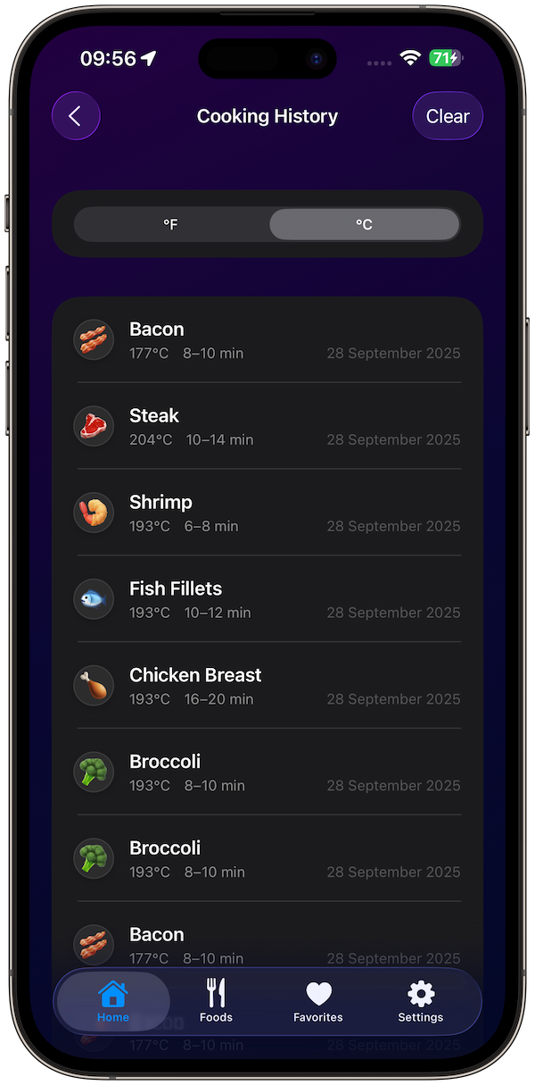 Save Favorites & History (Pro): Quickly access what you cook most often.