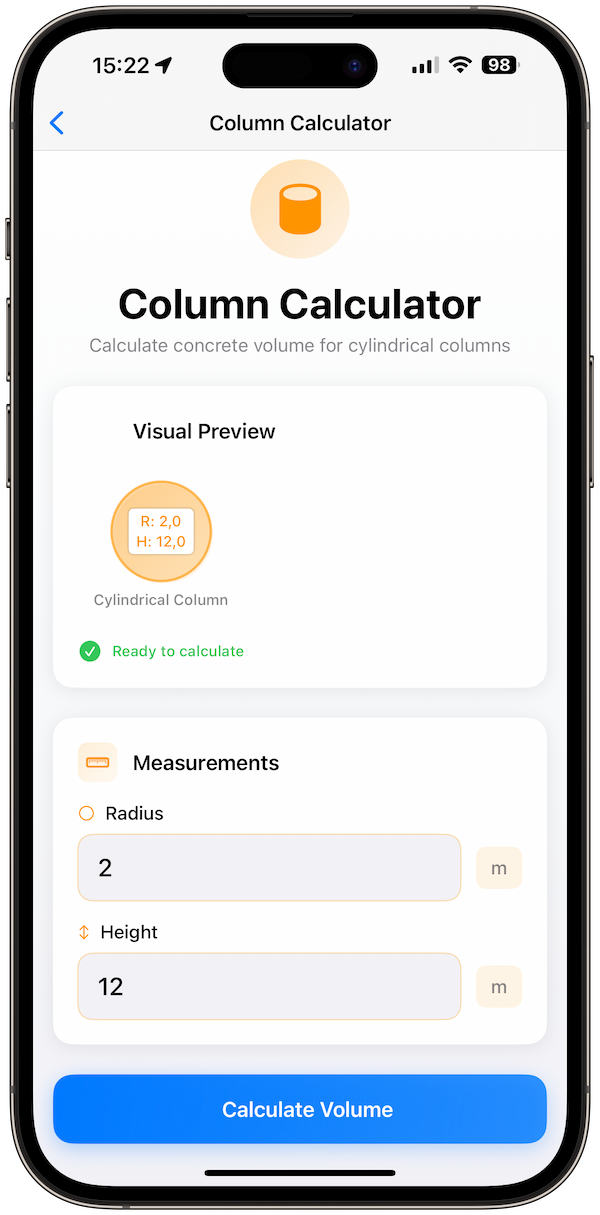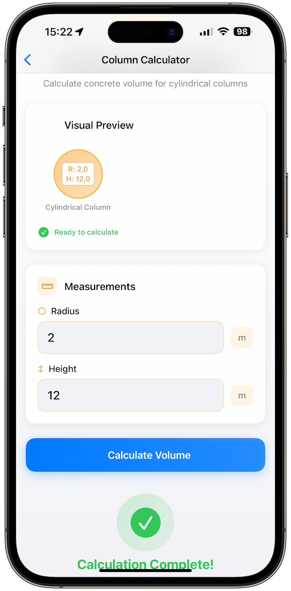 Concrete Calculator Pro is designed to take the guesswork out of construction projects. Instead of manually crunching numbers, the app provides fast, accurate, and professional-grade results in just a few taps.