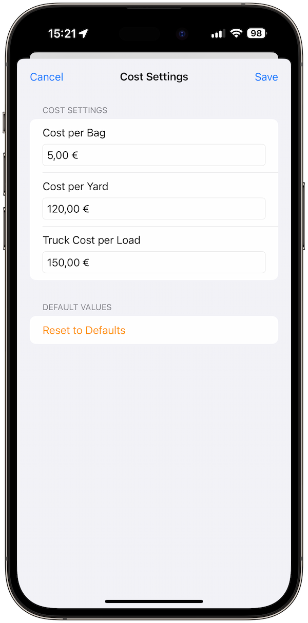 Yes. Enter your own bag, yard, or truck pricing and the app instantly calculates total costs.