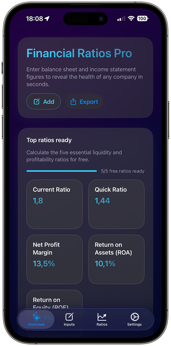 Financial Ratios Pro works on iPhone and iPad running iOS 18 or later.