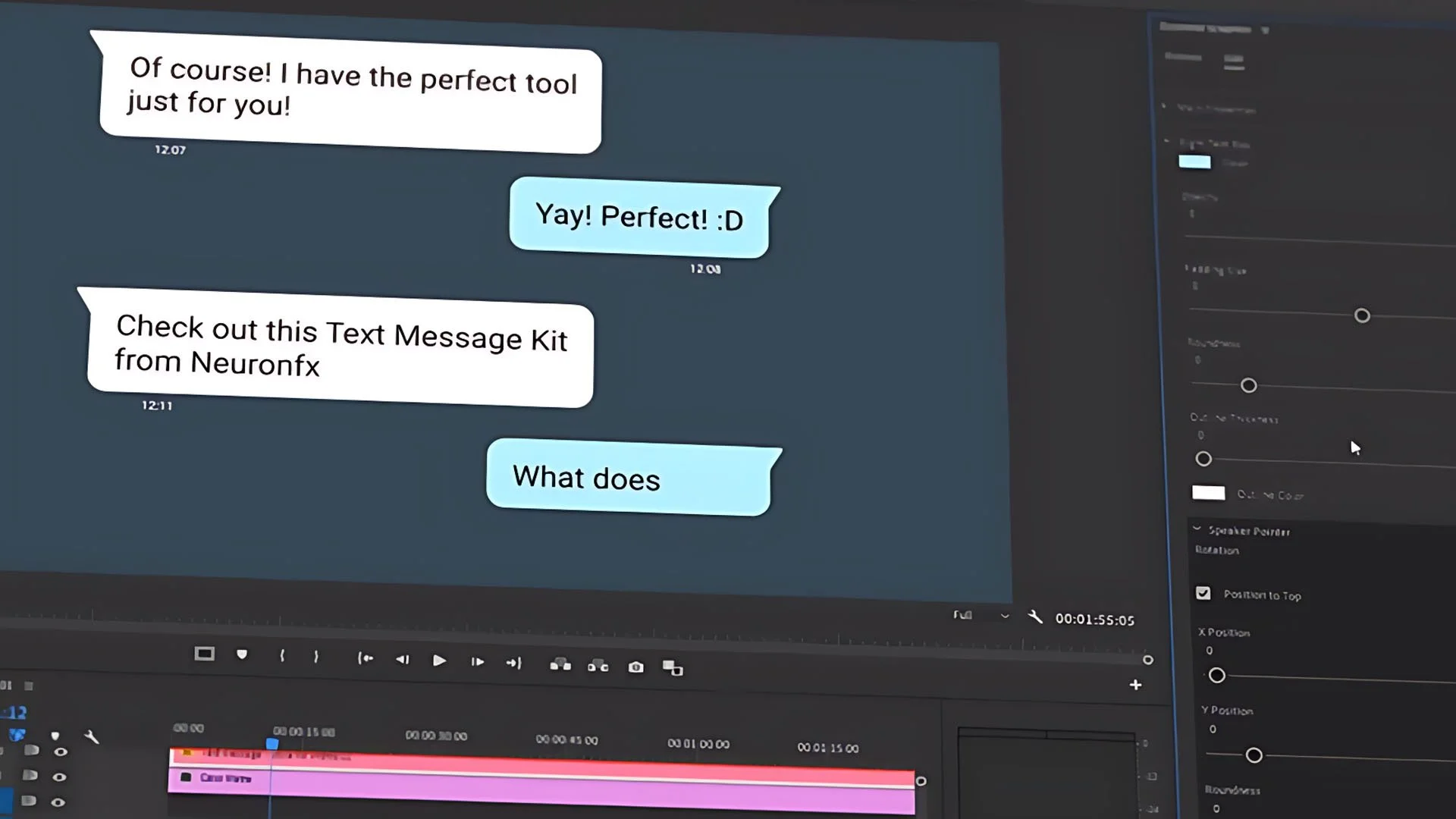 The "Text Messages Toolkit" for Adobe Premiere Pro is a comprehensive solution for adding text messages to your videos. This toolkit offers 10 different message styles, complete with professional controls for customization. You can change the text box appearance, re-time messages, and modify the layout, all within Premiere Pro. Its 4K resolution makes it suitable for high-quality video projects, adding a touch of sophistication and realism to your text messaging scenes.