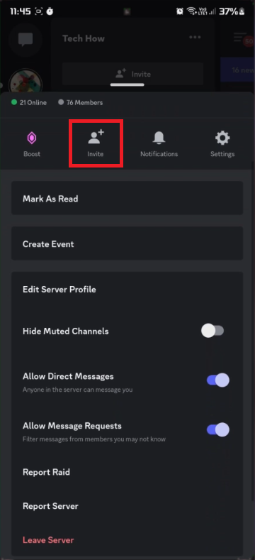 Initiate an Invite: Once in the server, select the "Invite" option to begin adding new users.