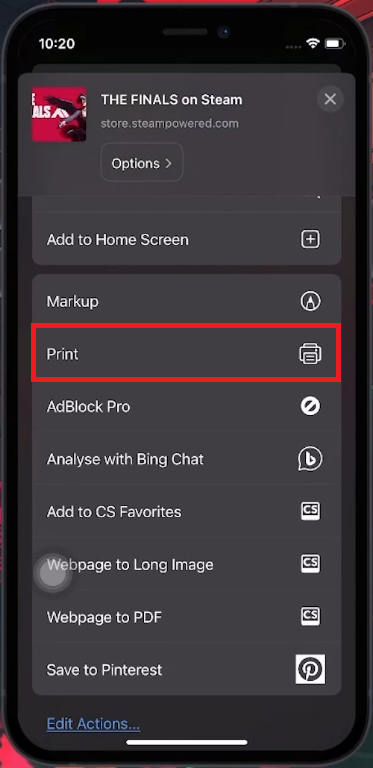Selecting Print: Among the various options, find and tap the 'Print' button to start the printing process.