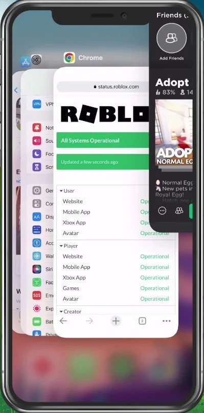 First, ensure you’re not playing Adopt Me on another device, such as a PC or other mobile device. Next, completely exit the application and open up your device settings.