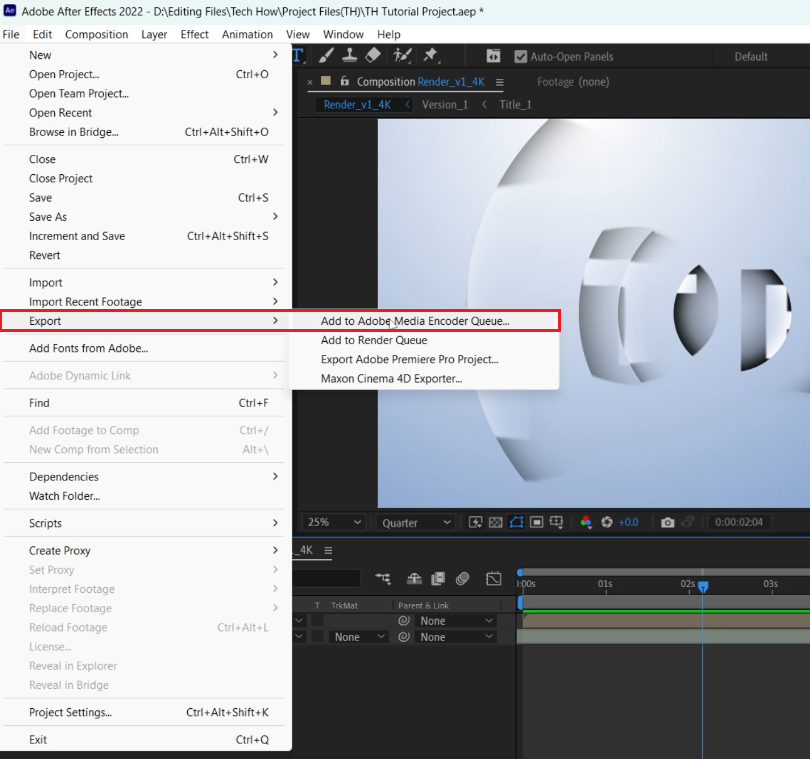 Click "File" -> "Export" -> "Add to Media Encoder Queue".
