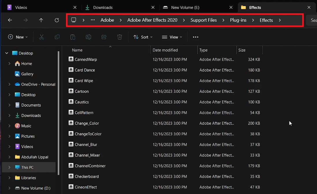 Adobe > Adobe After Effects > Support Files > Plug-ins > Effects