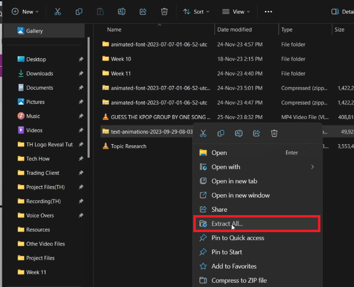 On a Windows PC: Right-click the .zip file and select 'Extract All' to unzip it in the same folder.
