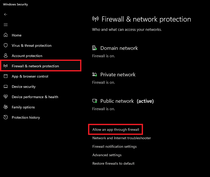 Navigate to Firewall Settings: Once the app window appears, select the "Firewall & network protection" option to dive into the specific settings of firewall controls.