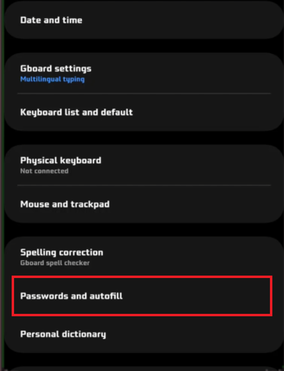 Navigate to Password Settings: Scroll to find "General Management" and select "Passwords and Autofill."