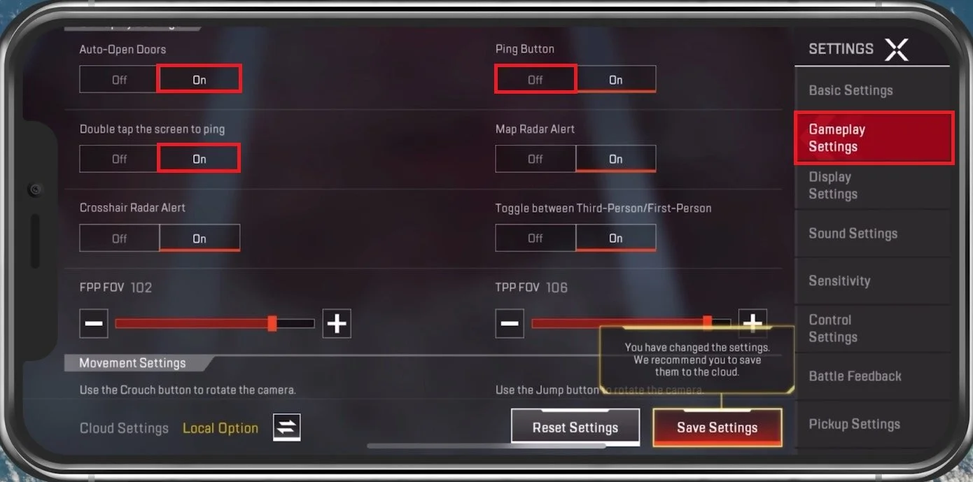 In your Gameplay Settings, you should leave the Auto-Open Doors option enabled. This will prevent you from using too many buttons while playing the game. I like to enable the Double tap the screen to ping option and disable the dedicated Ping Button. This can reduce clutter on your screen.