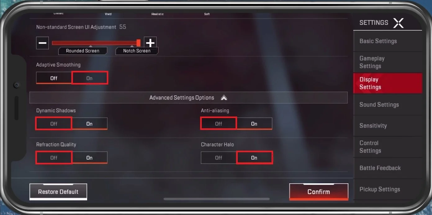 Your Display Settings will have a lot of impact on your gameplay's performance and visual quality, and they will heavily depend on your device’s performance and your quality/performance preferences. For reference, I am using an iPhone 11 Pro max in this example, and the game runs very well with enough quality for the screen size.