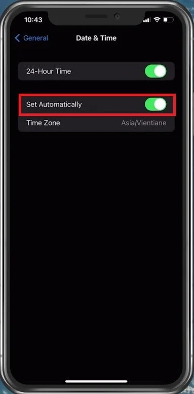 Completely exit the application on your mobile device and open your native settings application. On iOS devices, tap on General and then on Date & Time. Ensure your device sets the time automatically, so enable the Set Automatically option.