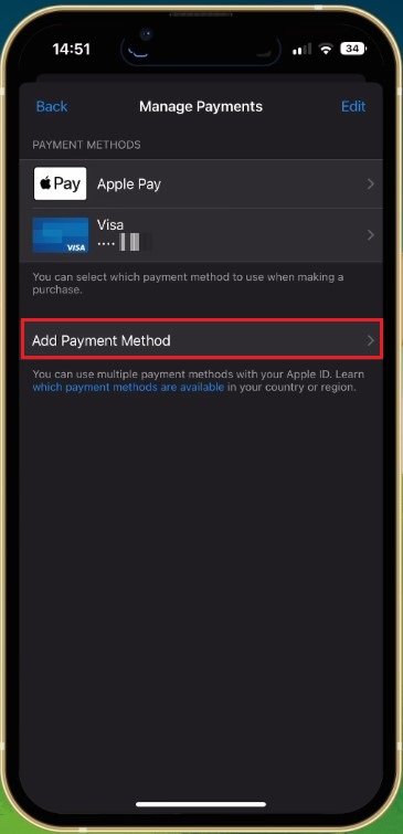 Next, remove your current payment method if you use one. For example, you can re-add the same payment method if the card is not expired. If the problem persists, add a different payment method, as your current one is causing the Apple ID error you are getting.