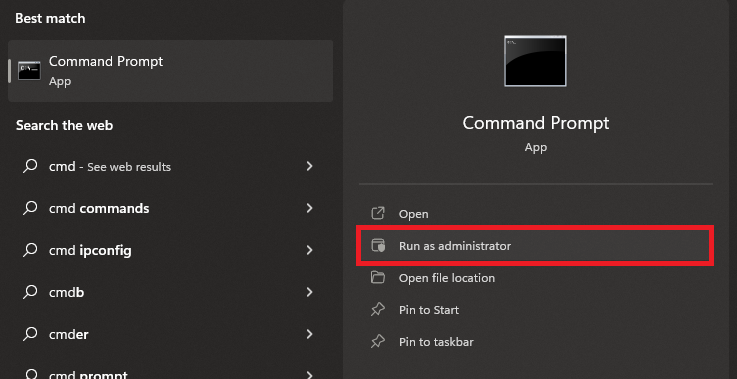 Command Prompt > Run as Adminstrator