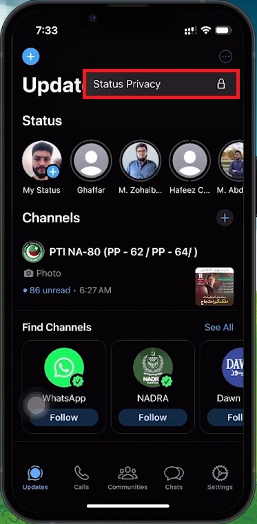 Access your Status Privacy settings in WhatsApp