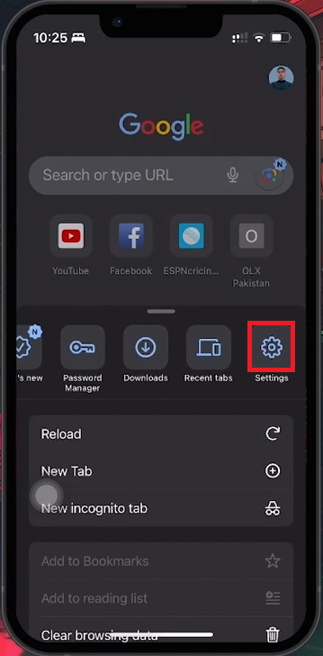 Navigating to Chrome's Settings on iOS Devices
