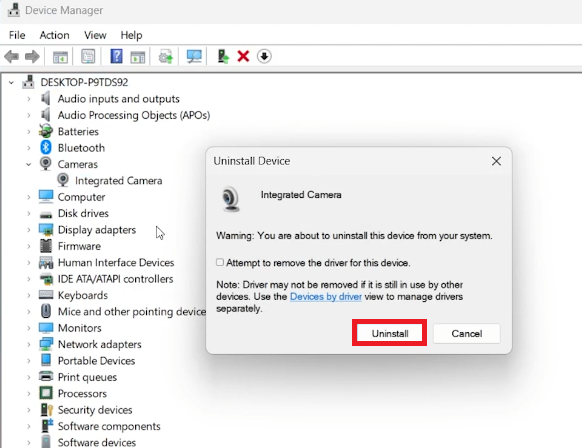If you're still experiencing camera issues on your Windows 11 PC, the culprit could be an outdated or corrupt camera driver. To refresh it, open your Start Menu and search for "Device Manager." In the Device Manager window, expand the "Camera" section. Right-click on your camera driver and choose "Uninstall Device." A pop-up window will appear; make sure to leave the checkbox unchecked and click "Uninstall."