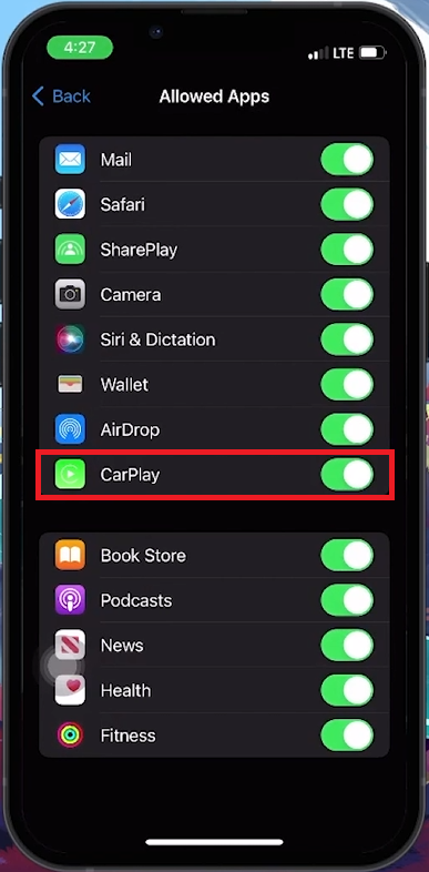 Go to 'Settings' > 'Screen Time' > 'Content & Privacy Restrictions' > 'Allowed Apps' and make sure CarPlay is toggled on.