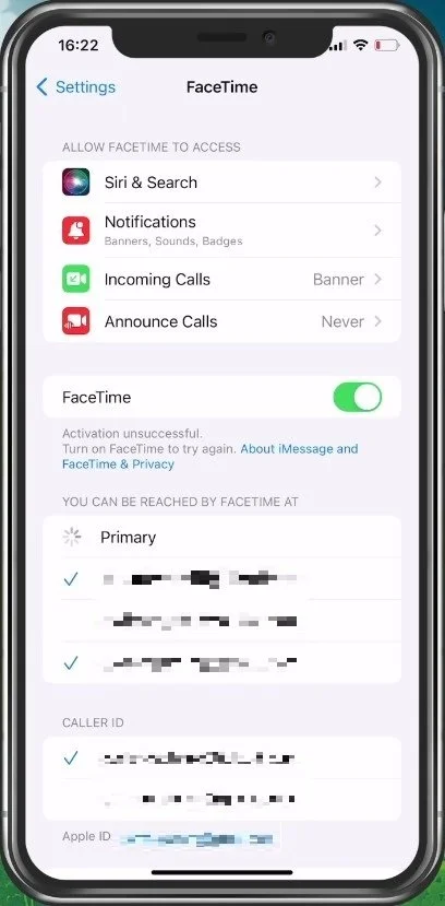 Sometimes, your email address can not be removed as it’s being used for iMessage and FaceTime. To fix this, head back to your main settings. Scroll down and select FaceTime. Here, you can see which email addresses are being used to reach you. Uncheck the email address you wish to remove from your Apple ID account.
