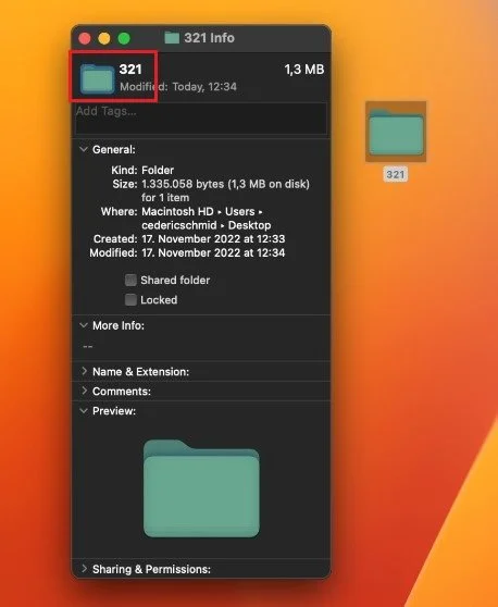 While using your Mac, right-click the folder where you wish to change the color and select Get Info. On this window, select the small folder icon on the top left and use the shortcut Command + C to copy the folder image. Alternatively, select the icon and navigate to Edit > Copy.
