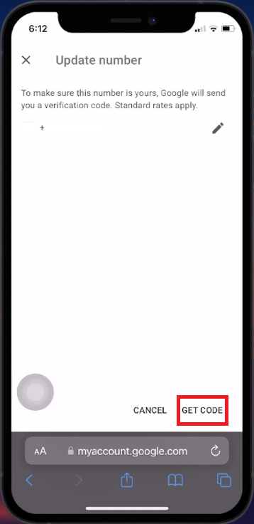 Google will send a verification code to your new phone number to confirm it's active and in your possession.