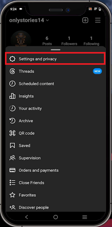 Instagram Settings > Settings and Privacy
