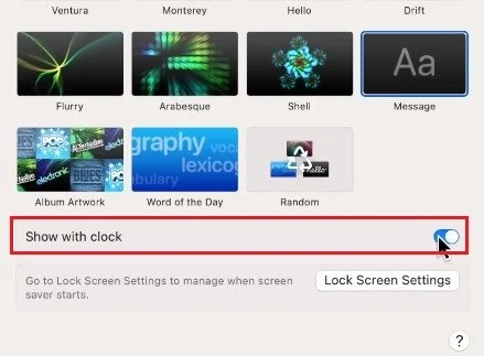 You also have the option to show a random screen saver every time it’s triggered. Enable the Show with clock option if you wish to see a digital clock on your screen saver.