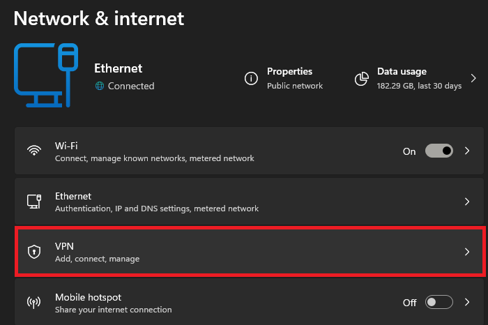 Windows Settings > Network & Internet