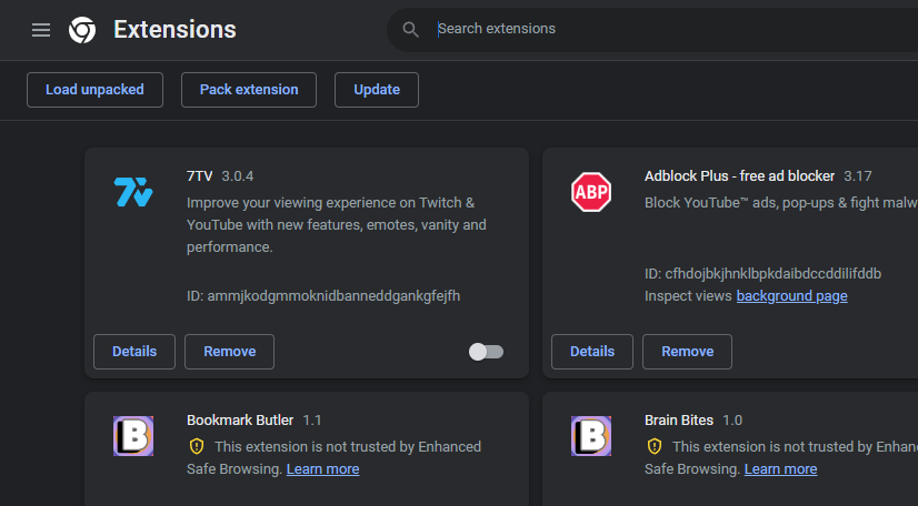 You'll be redirected to a new page listing all your installed extensions. Here, toggle off each extension to disable it.