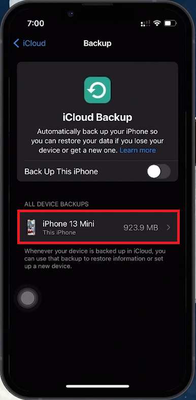 iCloud Settings: Go to 'iCloud' and then 'iCloud Backup'.