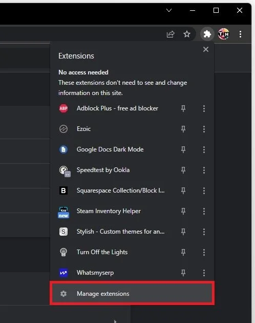 Select your Extensions icon and click on Manage Extensions.