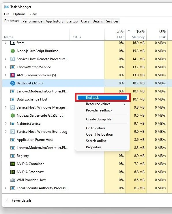Task Manager > Processes > End Task