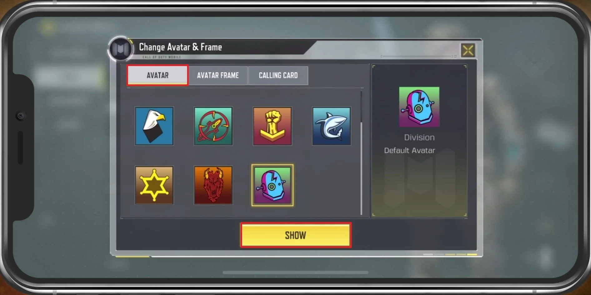 Change your Avatar Frame and Calling Card for your Call of Duty Mobile account. These changes should be applied immediately.