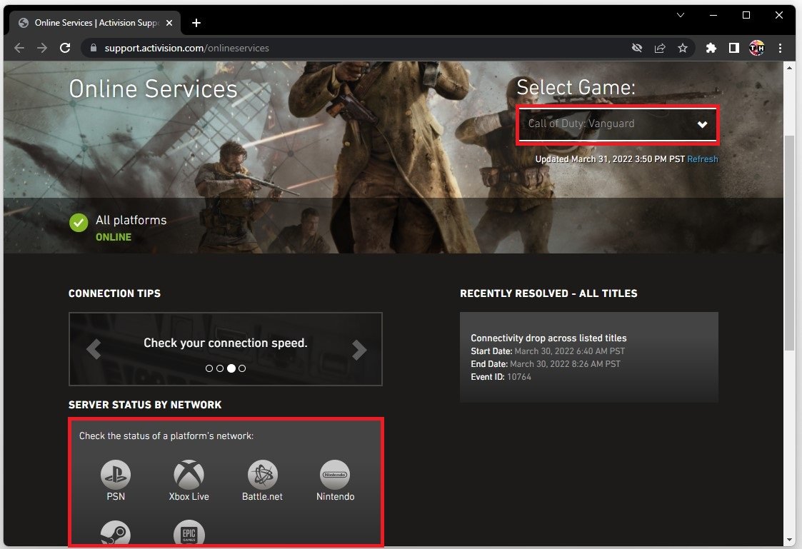 Verify the Call of Duty Vanguard Server Status