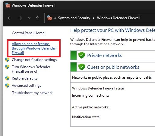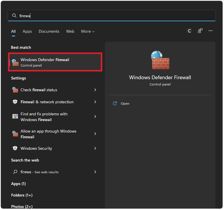 Ensure your firewall and anti-virus applications are not blocking parts of the Call of Duty game files. Search for Firewall in your start menu search to open up your Firewall & Network Protection system settings window.