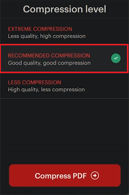 For instance, if you're compressing a portfolio to email to a prospective employer, 'Recommended Compression' ensures your file is small enough to send while keeping the images clear and professional.