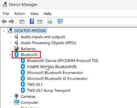 In the Device Manager window, expand the 'Bluetooth' section.