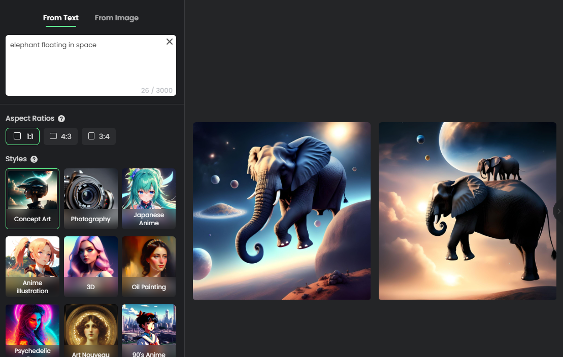 But Fotor's AI image generator isn't limited to just text descriptions. You can navigate to the "From image" section where you can select a specific style or even upload a pre-existing image as a model. This advanced feature ensures a more refined and personalized generation, bringing your exact vision to life.