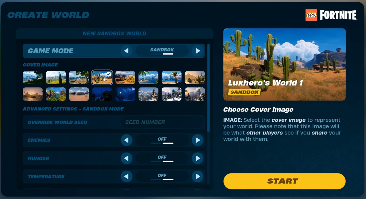 Start Your World: Click on “Start World” and wait briefly as your world is being created. This is the moment where your creative ideas come to life in Lego Fortnite.