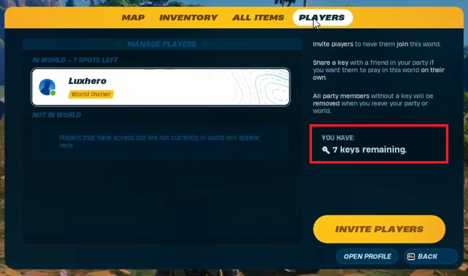 Once you've created your own world in Lego Fortnite, you might want to invite friends to join in the fun. Here’s how to do it: