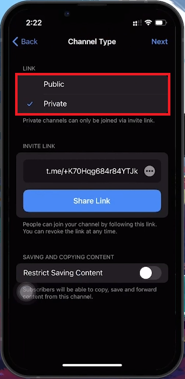 Private or Public Telegram channel
