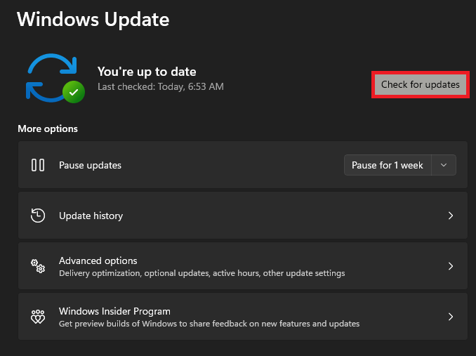 Click “Check for Updates” to scan for available updates.