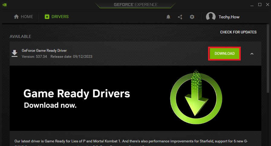 GeForce Experience > Drivers > Download