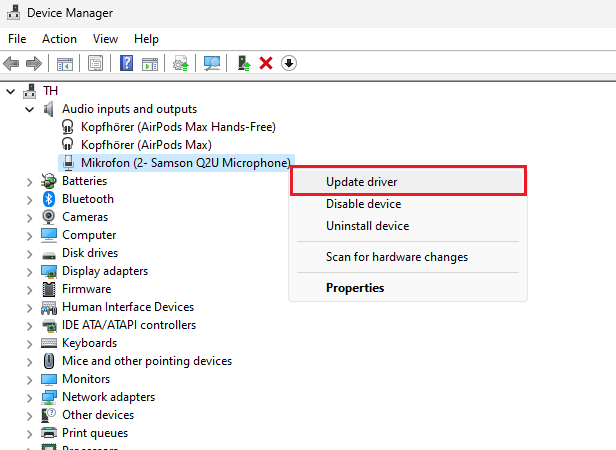 To update your microphone drivers, exit CS2 and open your Device Manager on Windows. Here, you can easily update the drivers under the “Audio Inputs and Outputs” section to synchronize with the latest software updates.