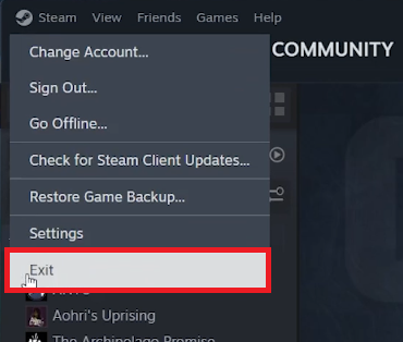 Proceed to click on "verify integrity of game files." This action initiates a thorough check to ensure all your files are intact and uncorrupted. Be patient, as this process might take a few minutes to complete. Once it's done, head to the upper left corner of your screen and select the 'Steam' tab. From the emerging drop-down menu, choose 'Exit' to close the Steam application.