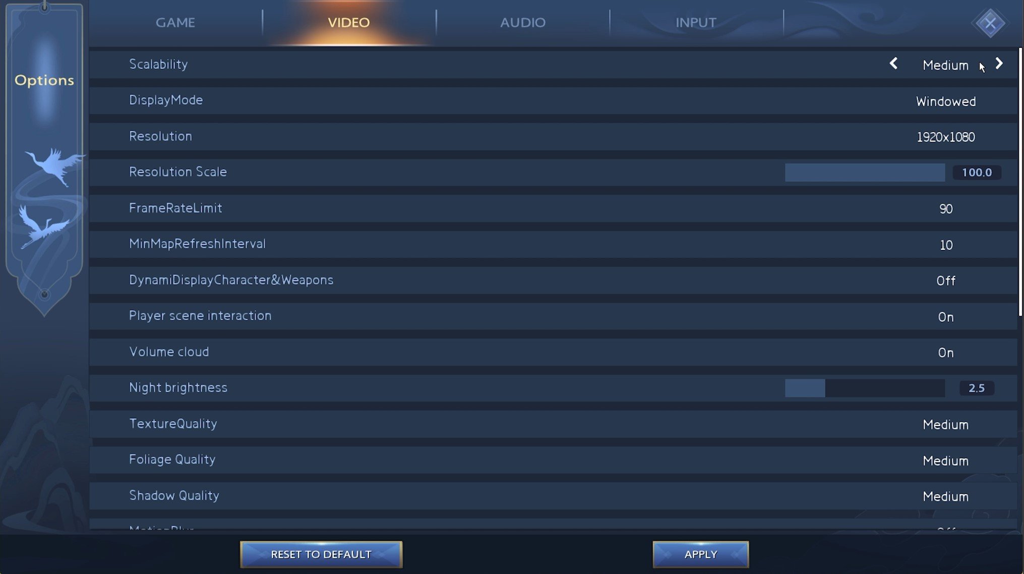 The Dynamic Display of Character and Weapons option can induce lag when enabled. Disable this option for now, and if you have some performance to spare after applying the subsequent tweaks, then feel free to enable it and see if it’s worth it on your system. Enable the Player Scene Interaction and Volume Cloud options below. The Night Brightness option will have little to no impact on your performance, and I like the default option.