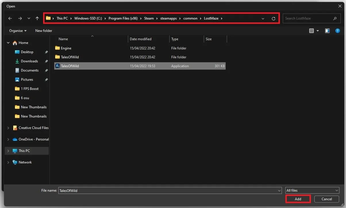 In your File Explorer, navigate to the drive on which you saved the game on. The file path for the Steam version is: Program Files > Steam > steamapps > common > LostMaze and here select the TalesOfWild exe application.