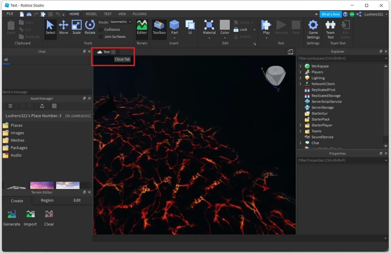 To delete a published game, open up Roblox Studio and close the game you are working on. To do this, close the game tab atop your Roblox Studio window.