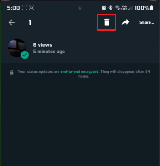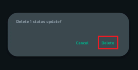 Now, with your status picked, dash to the top right corner of your screen to find a trash bin icon. A simple tap on this icon kicks off the deletion step. A little prompt will pop up, asking you to confirm the deletion. Hit 'Delete' to seal the deal.