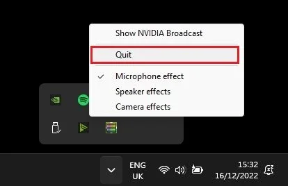 Close the application causing the DirectX error, such as Steam. Right-click the app icon in your system tray and select Exit or Quit.